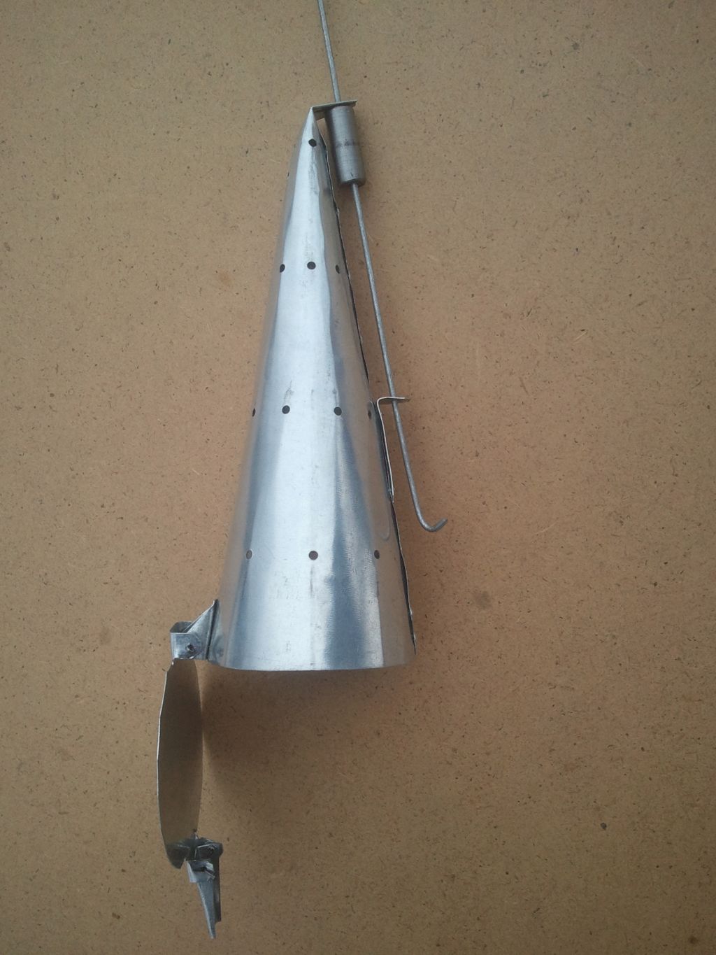 ПРАЦЮЄМО! ТОВАР Є В НАЯВНОСТІ! Ціна - 187 грн. Продам кормушку-самосвал для підгодовування риби. Може служити як для зимової, так і для літньої риболовлі. Кормушка призначена доставляти прикорму для риби навпроти вашої лунки. Механізм роботи зимової кормушки: прикормка закладається в конус кормушки-самосвал, закривається кришкою, потім опускається на дно водойми, торкаючись дна, кришка відкривається, звільняючи вихід прикорми з годівниці (все як на фото). Забезпечена тягою та механізмом розвантаження. Об'єм бункера для прикормки становить - 0,42 л.