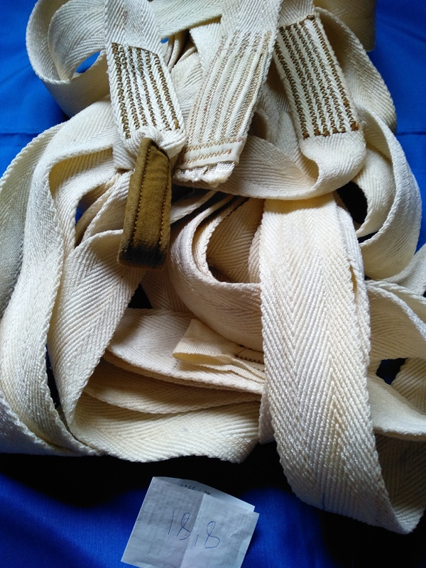 Лента тормозного парашюта самолёта,на разрыв 5000 кг.,длина 12,75 метров,ширина 60 мм.,Отличное б/у.Цена 600 грн.,Лента сшита на заводе из двух кусков,сшивка на расстоянии 7 метров от конца,на фото она отлично видна,на прочность ленты не влияет. Такая же длиной 18.8 метров,цена 900 грн.