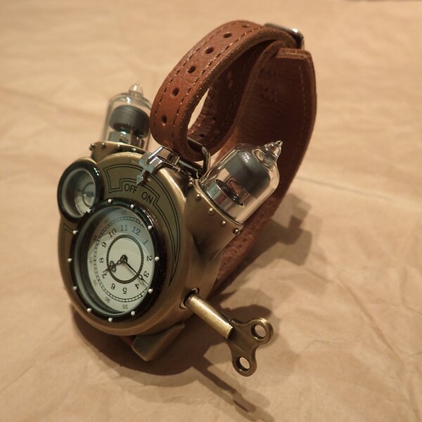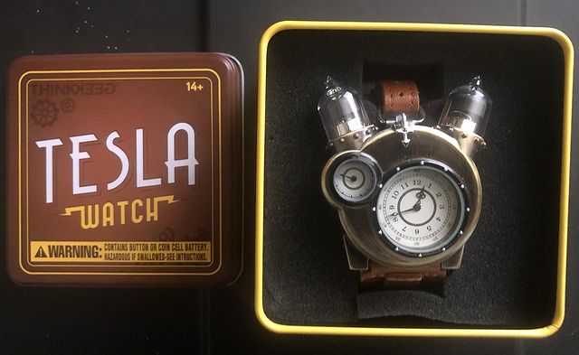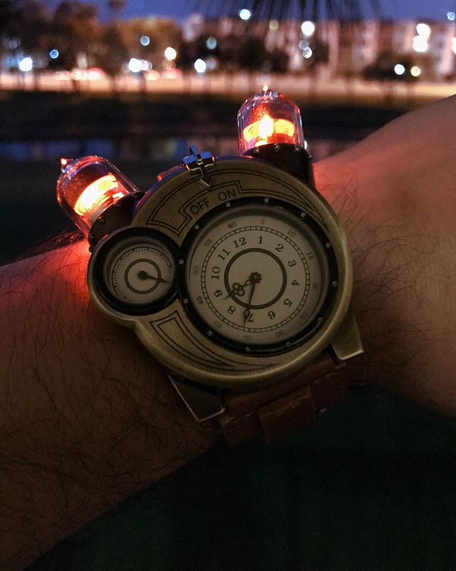 Ламповые наручные часы Tesla Watch в стиле стимпанк в подарочной упаковке